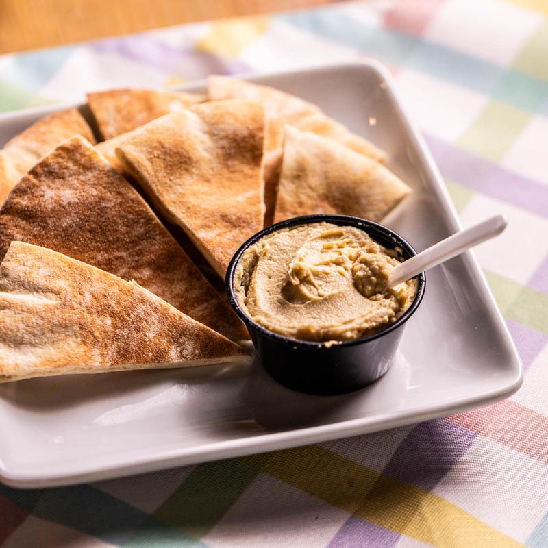 Traditional hummus sprinkled with paprika and served with 8 slices of warmed pita.
