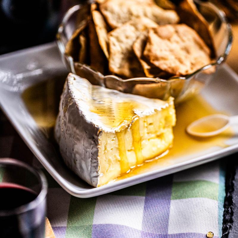 French Brie topped with Texas spiced honey served with gluten-free crackers.